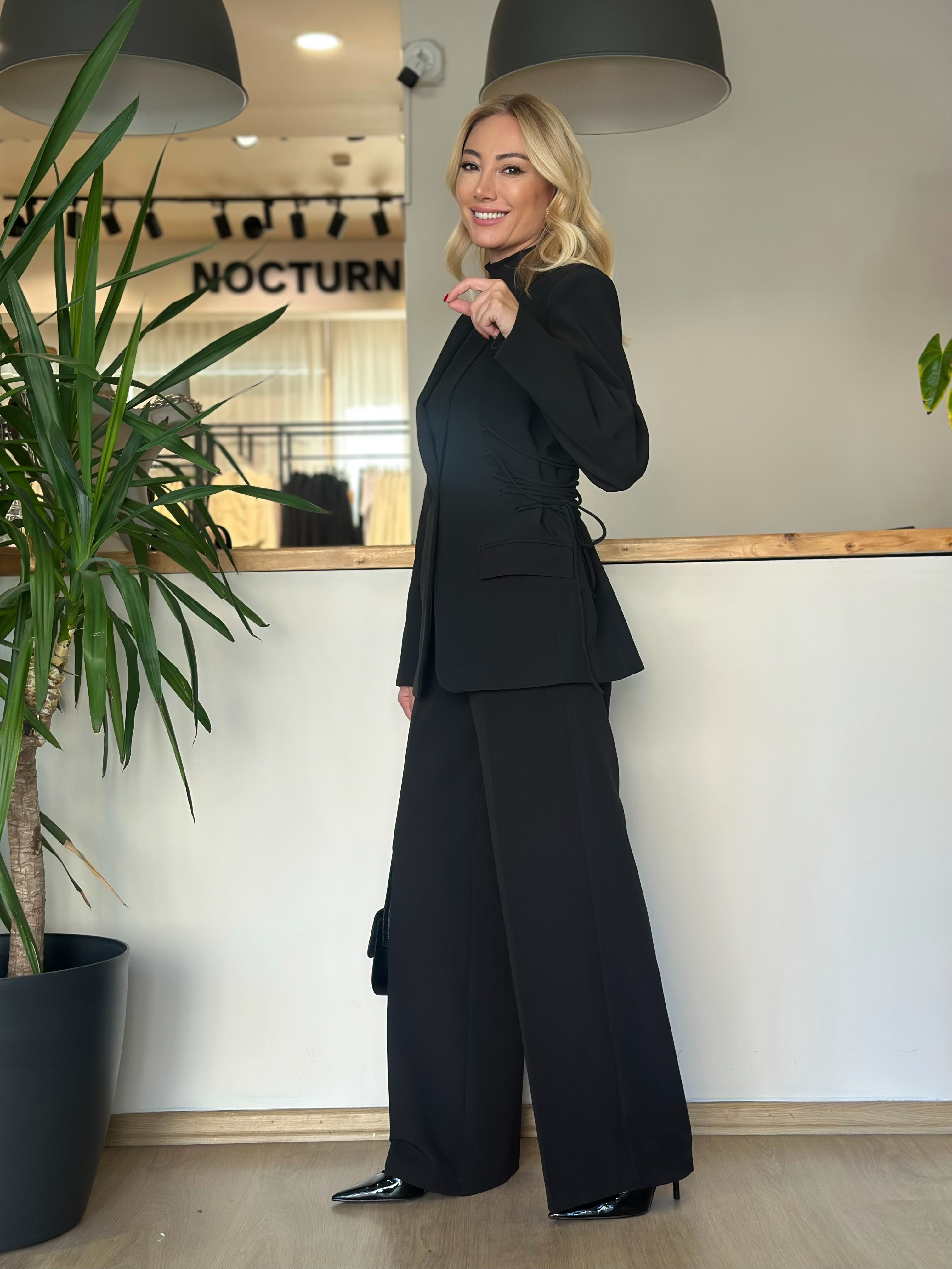 Siyah Yandan Bağlama Detaylı Ceket Askı00145