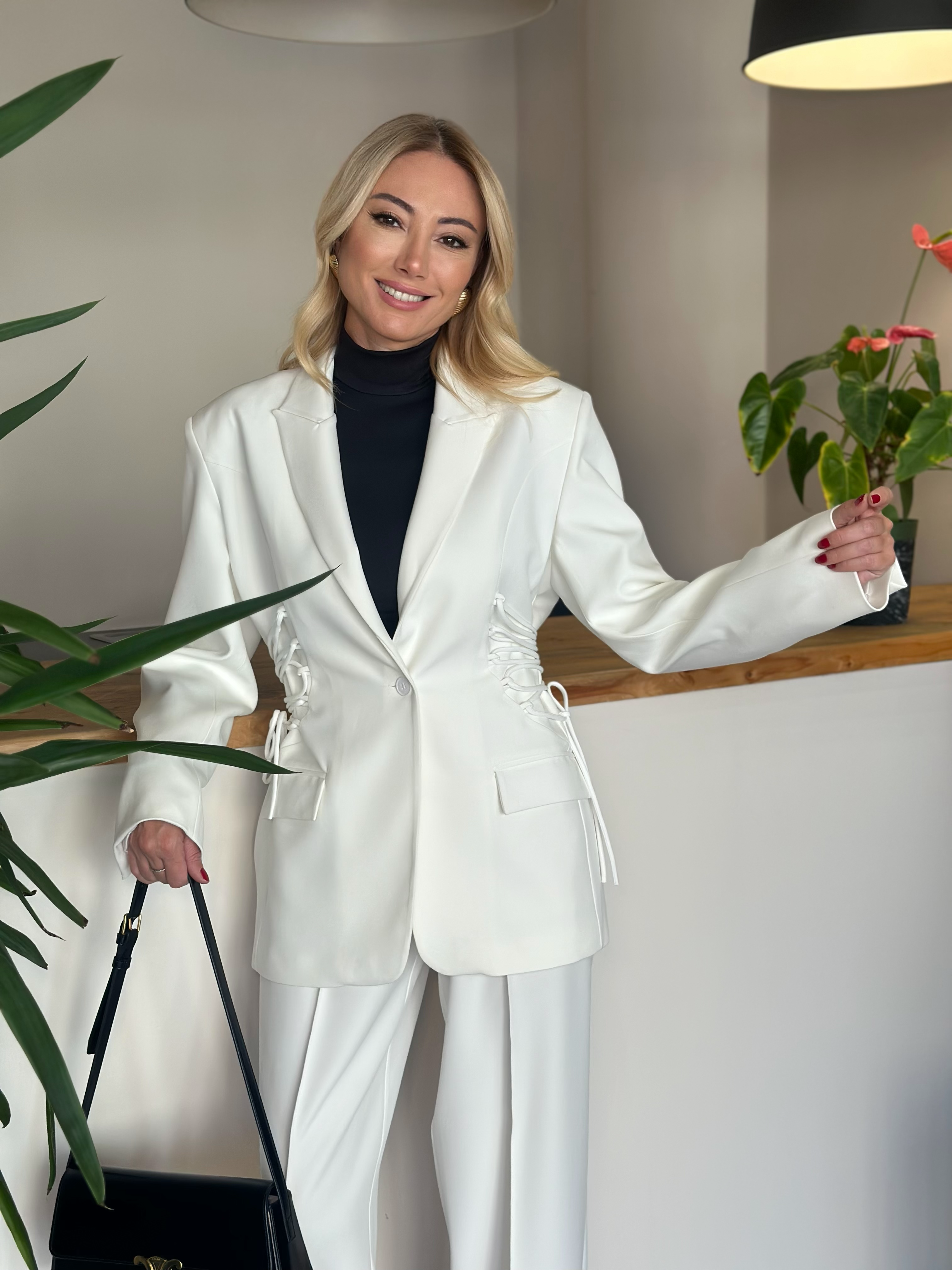 Beyaz andan Bağlamalı Ceket Askı00181