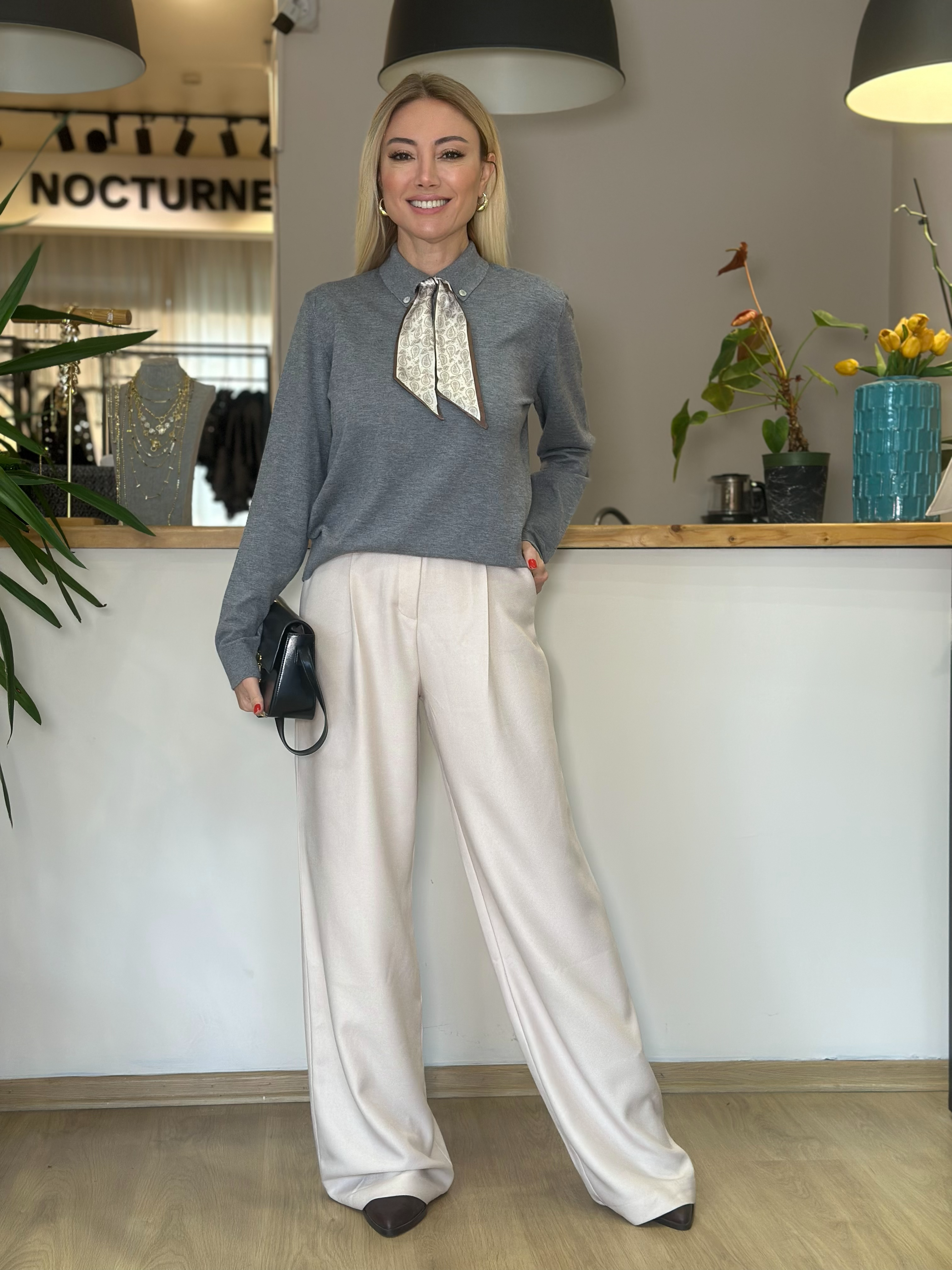 Fular Detaylı Gri Triko Askı00367