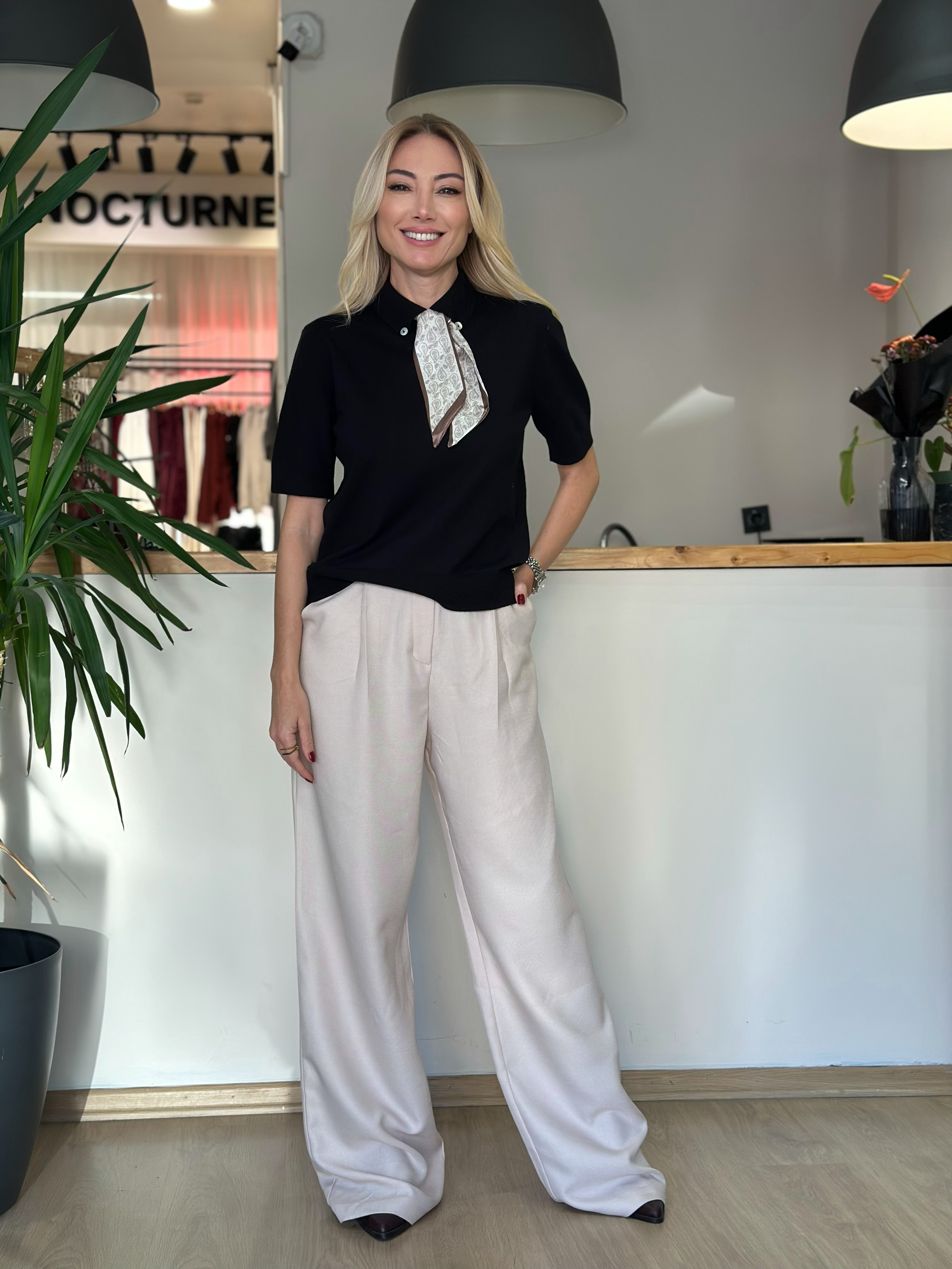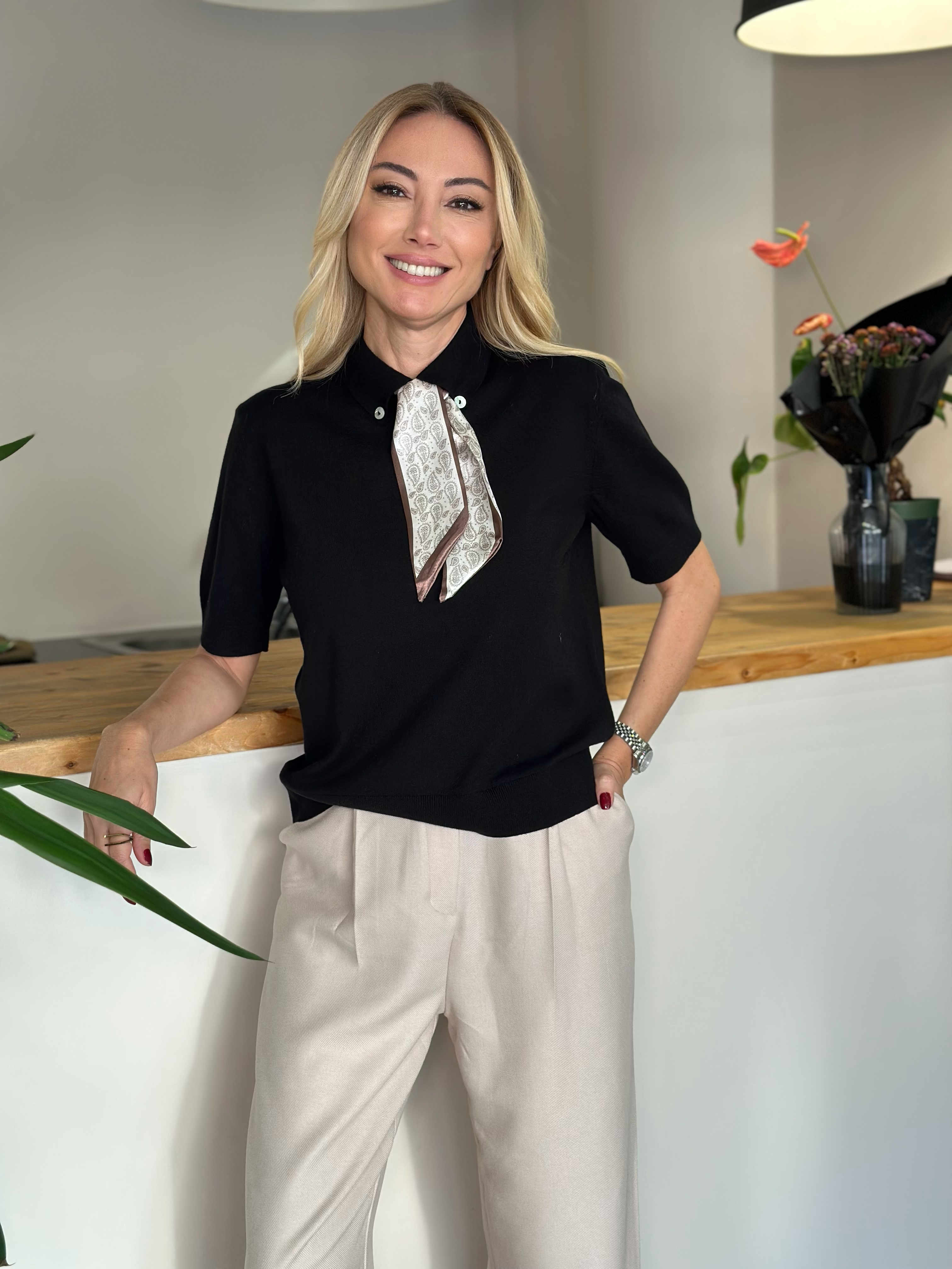 Fular Detaylı Siyah Triko Askı00289