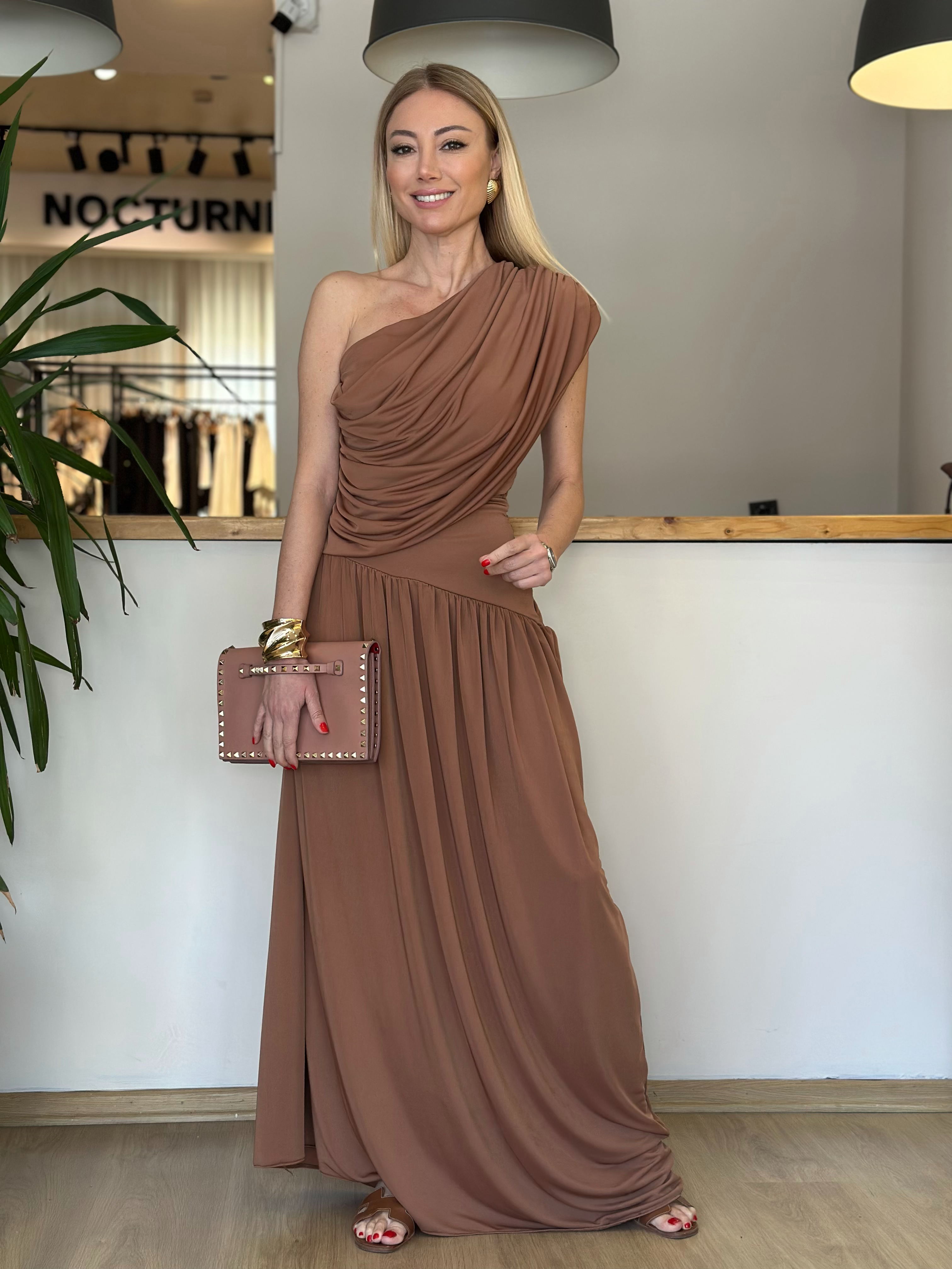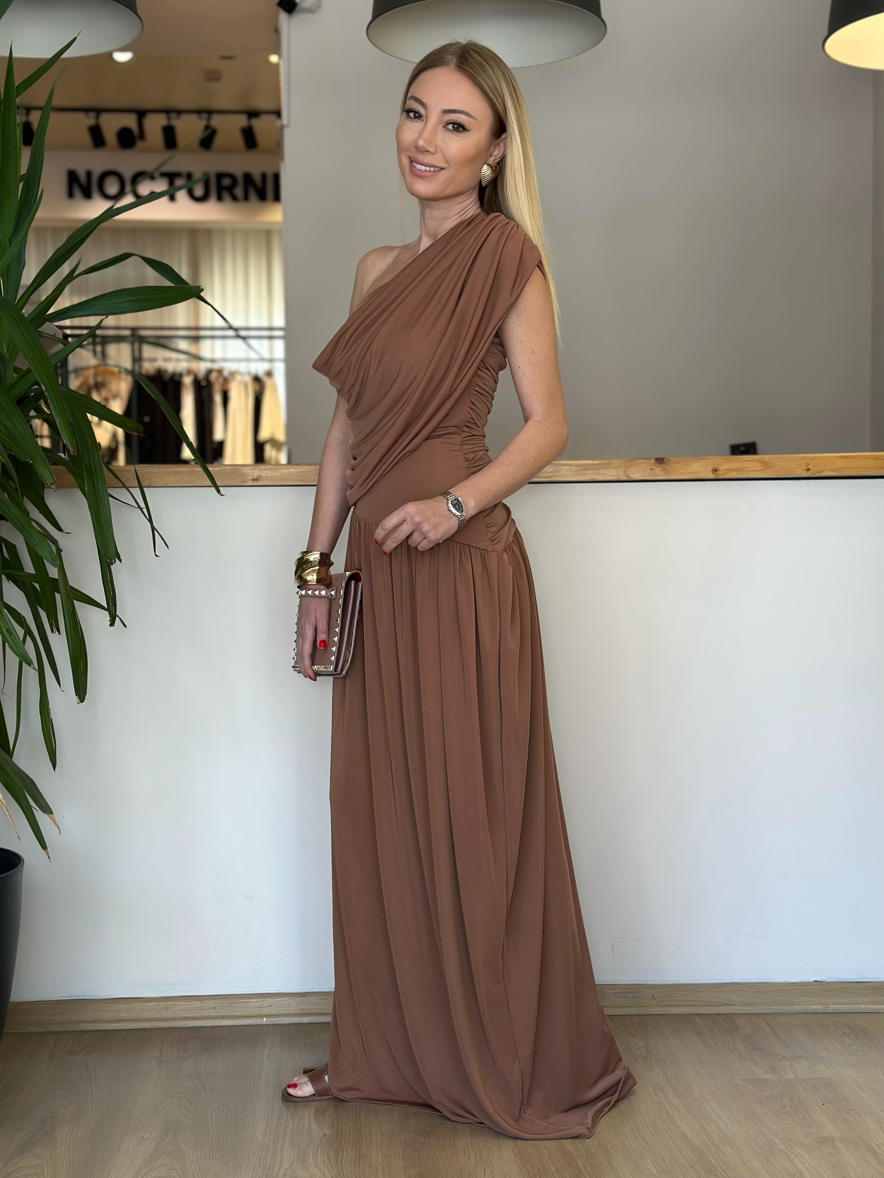 Sandy Kumaş Drapeli Kahve Elbise Askı0051