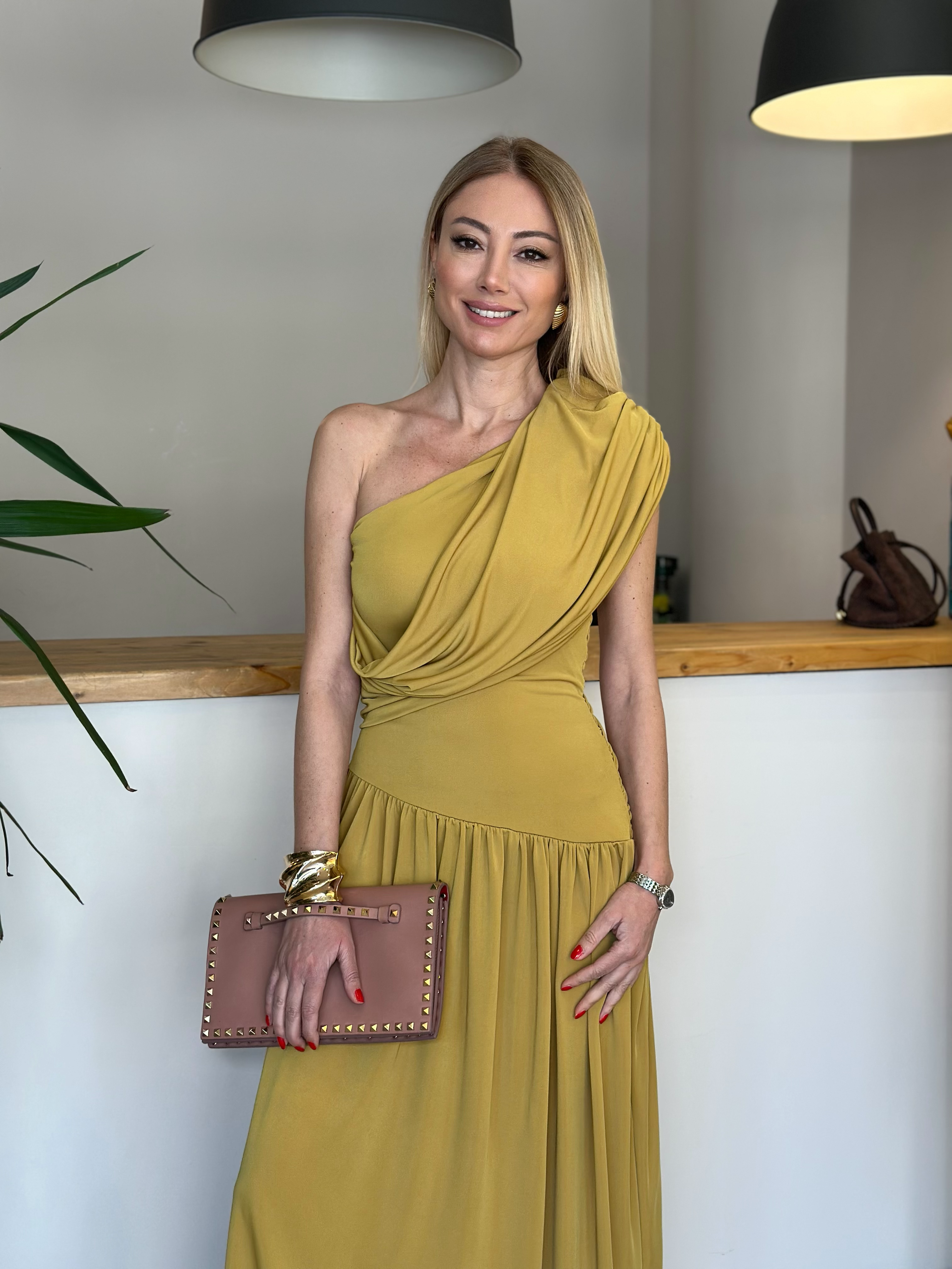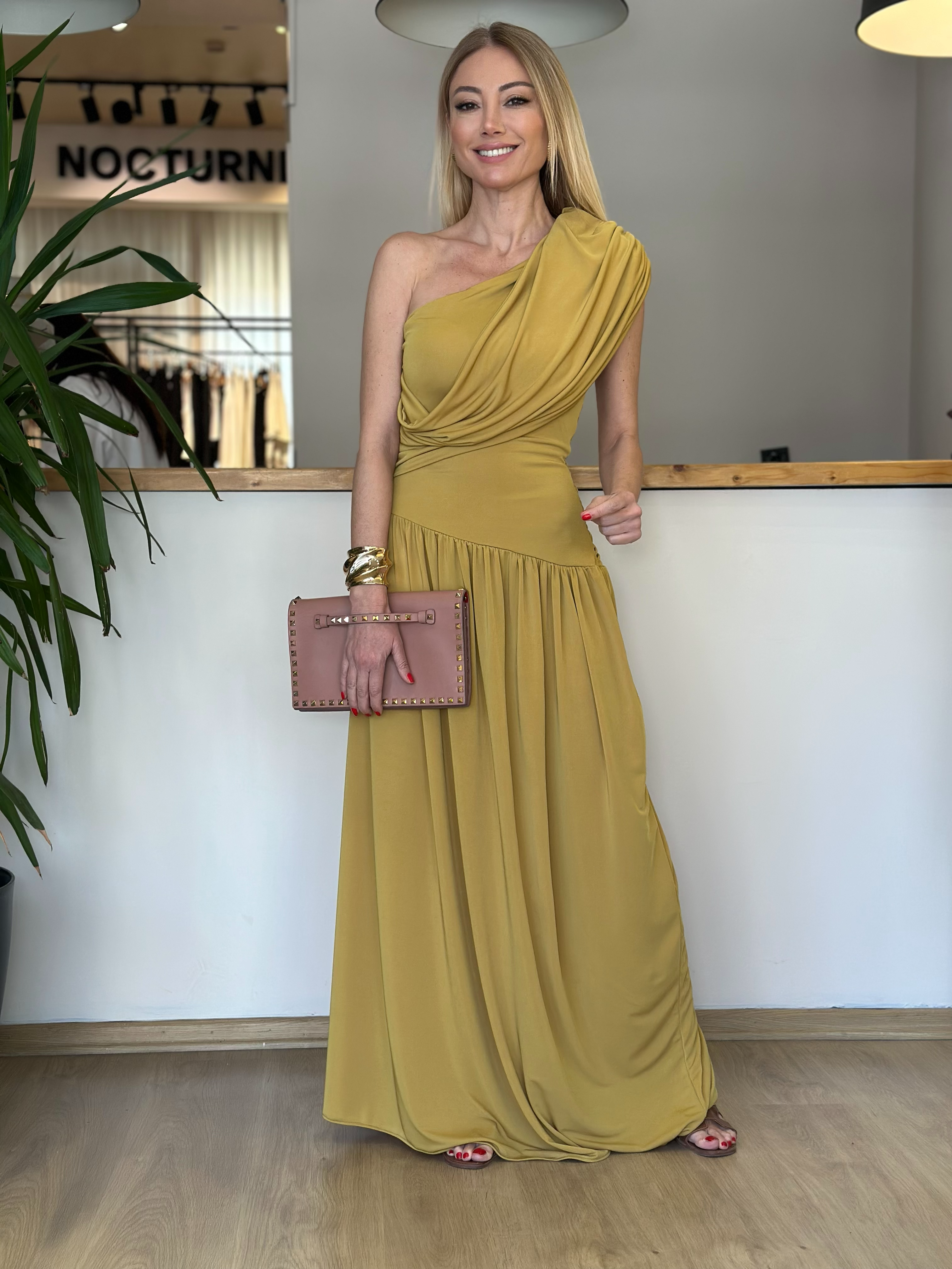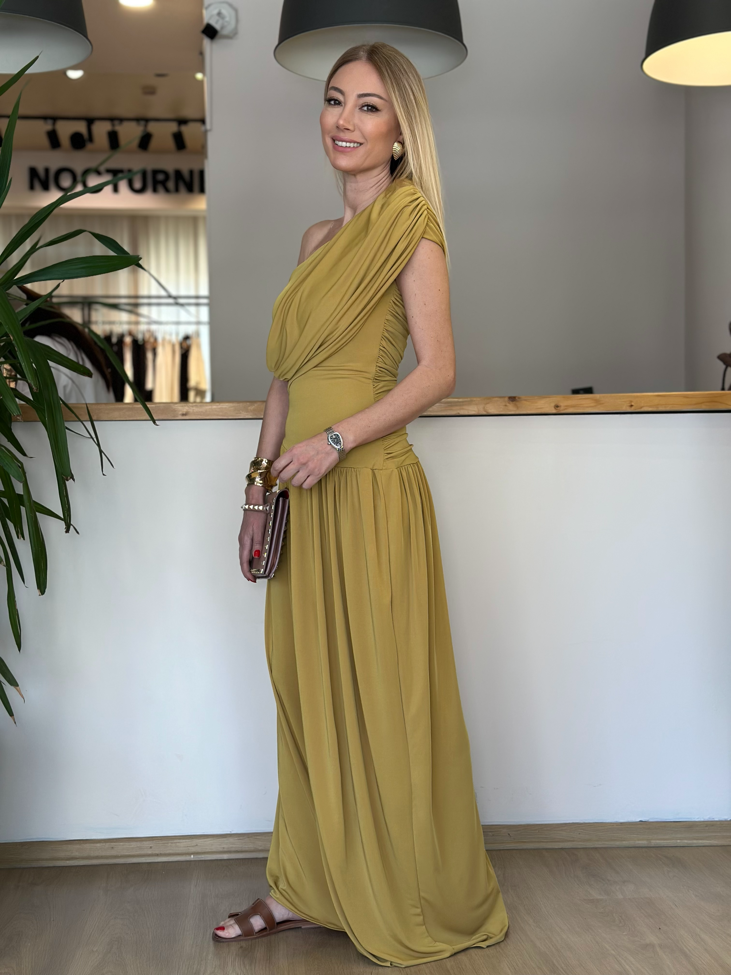 Sandy Kumaş Drapeli Olive Elbise Askı0052