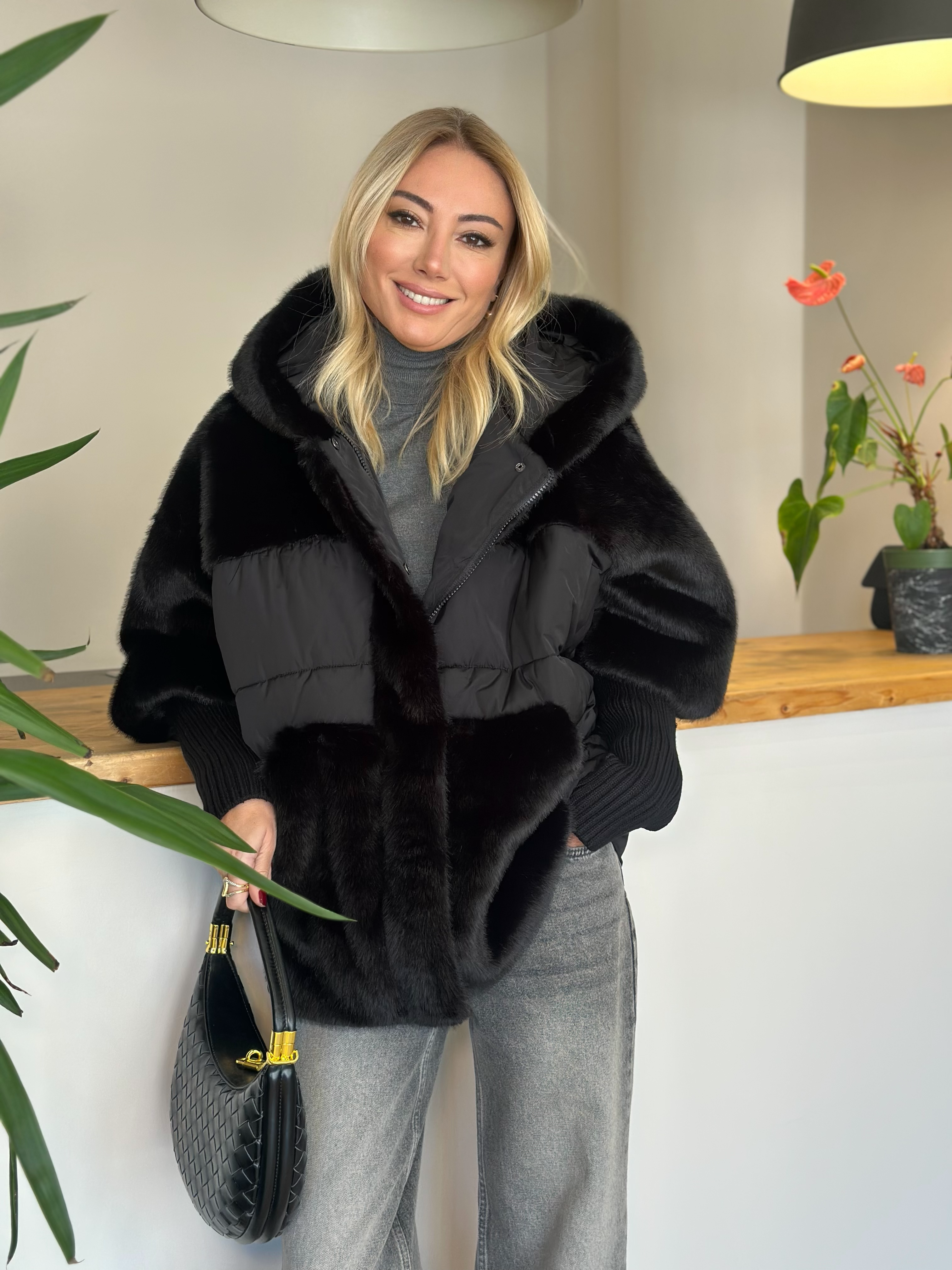 Siyah Modern Tüylü Mont Askı00221
