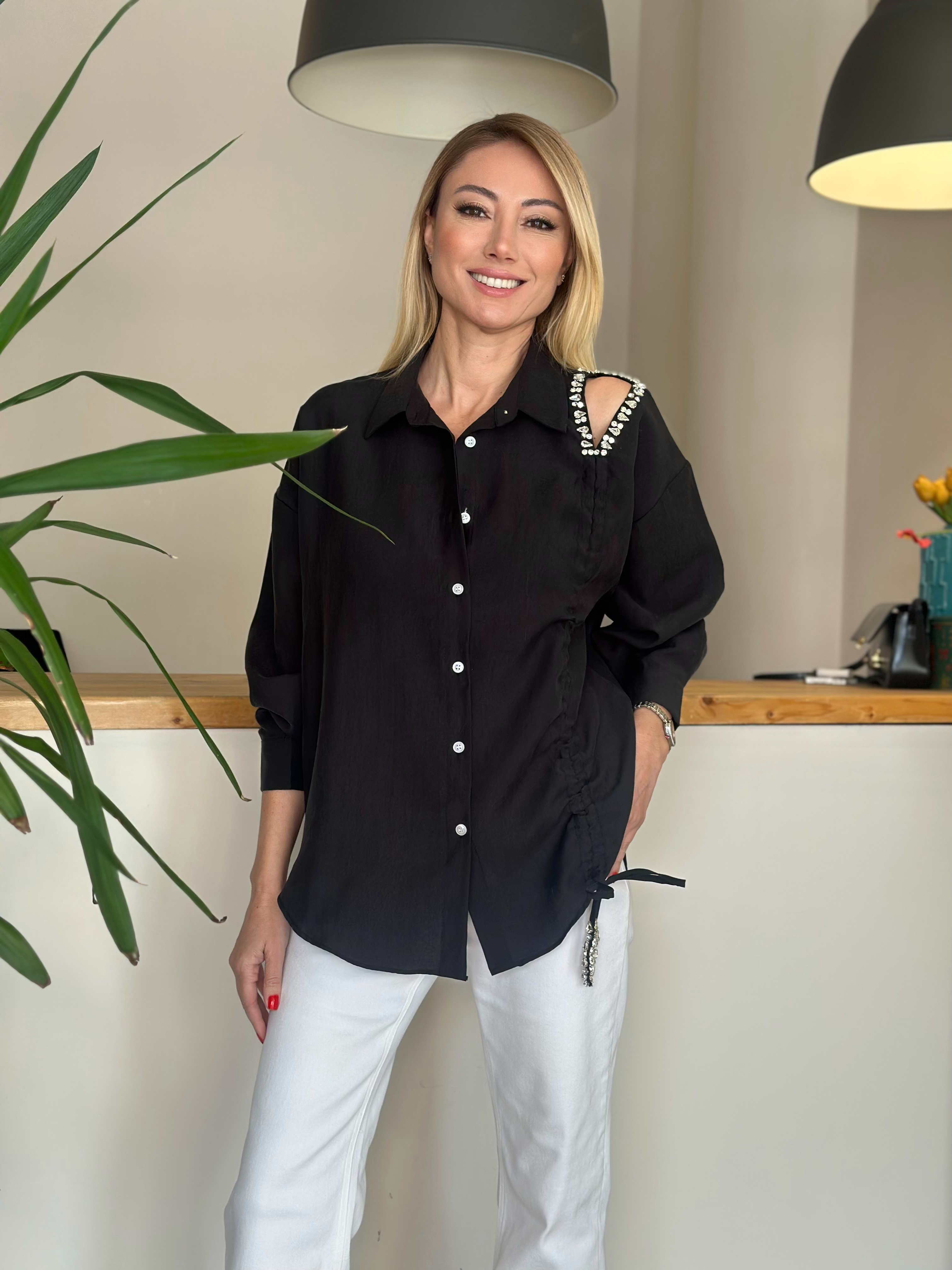 Siyah Taş Detaylı Paris Gömlek Askı00171