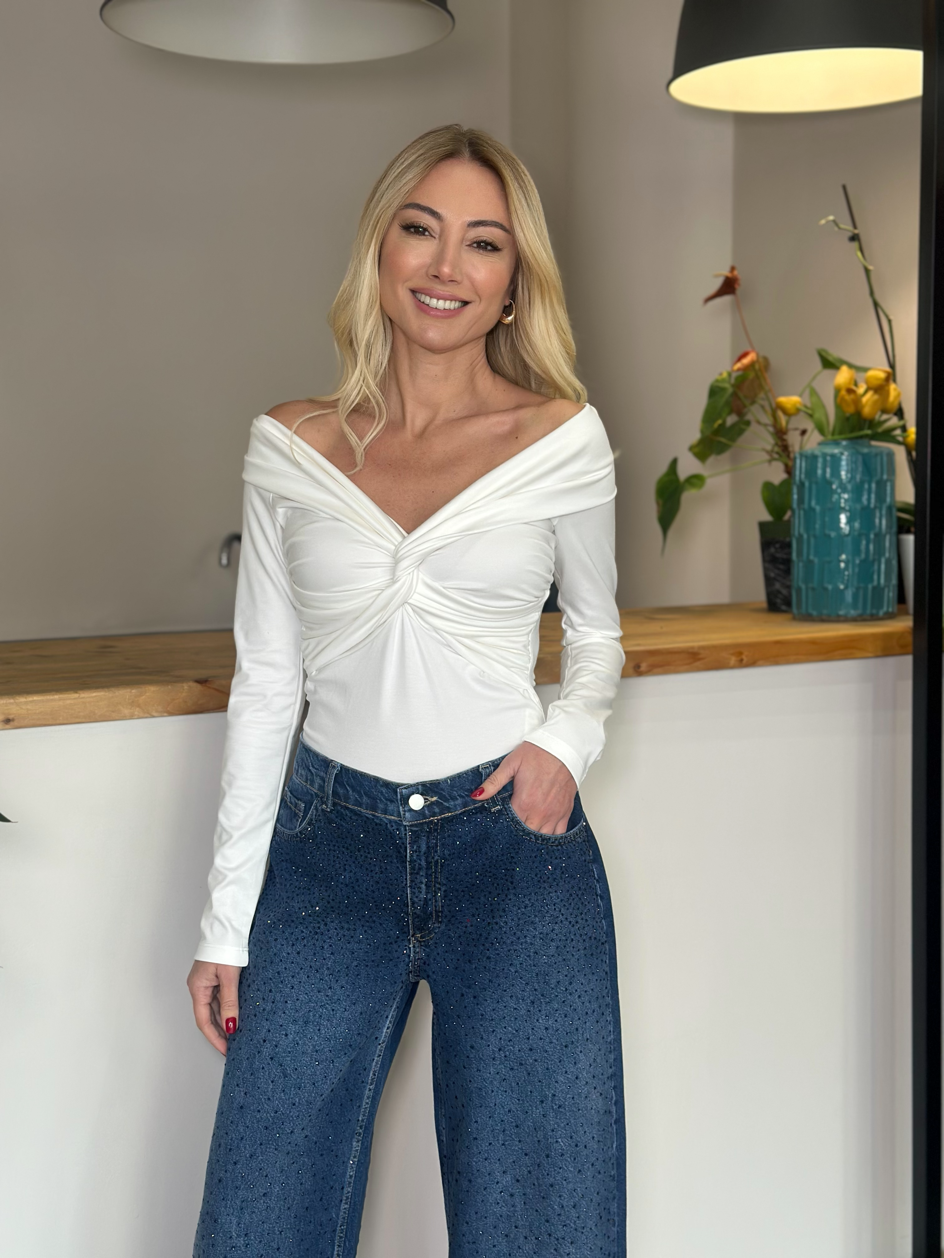 Taş Detaylı Geniş Paça Jean Askı00373