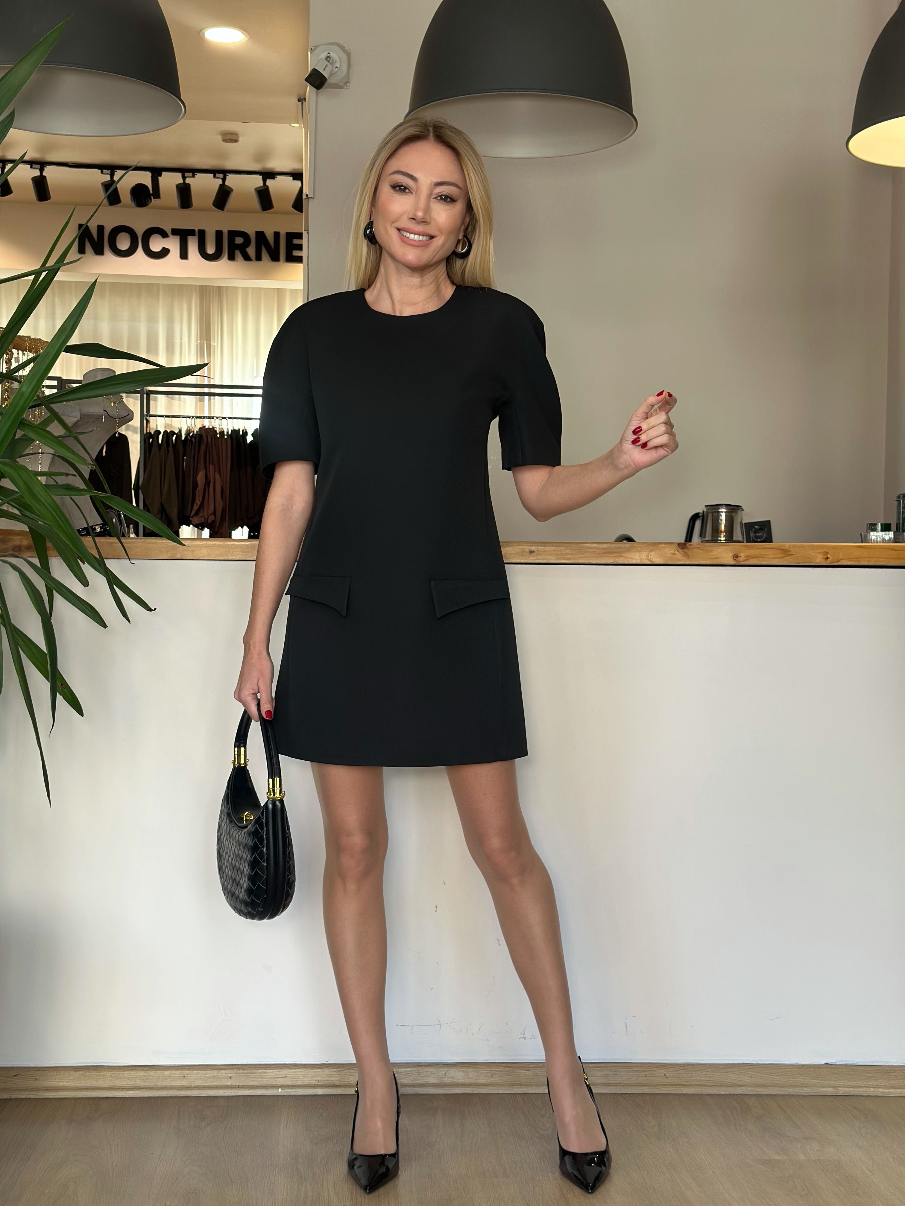 Vatkalı Cep Detaylı Siyah Mini Elbise Askı00438