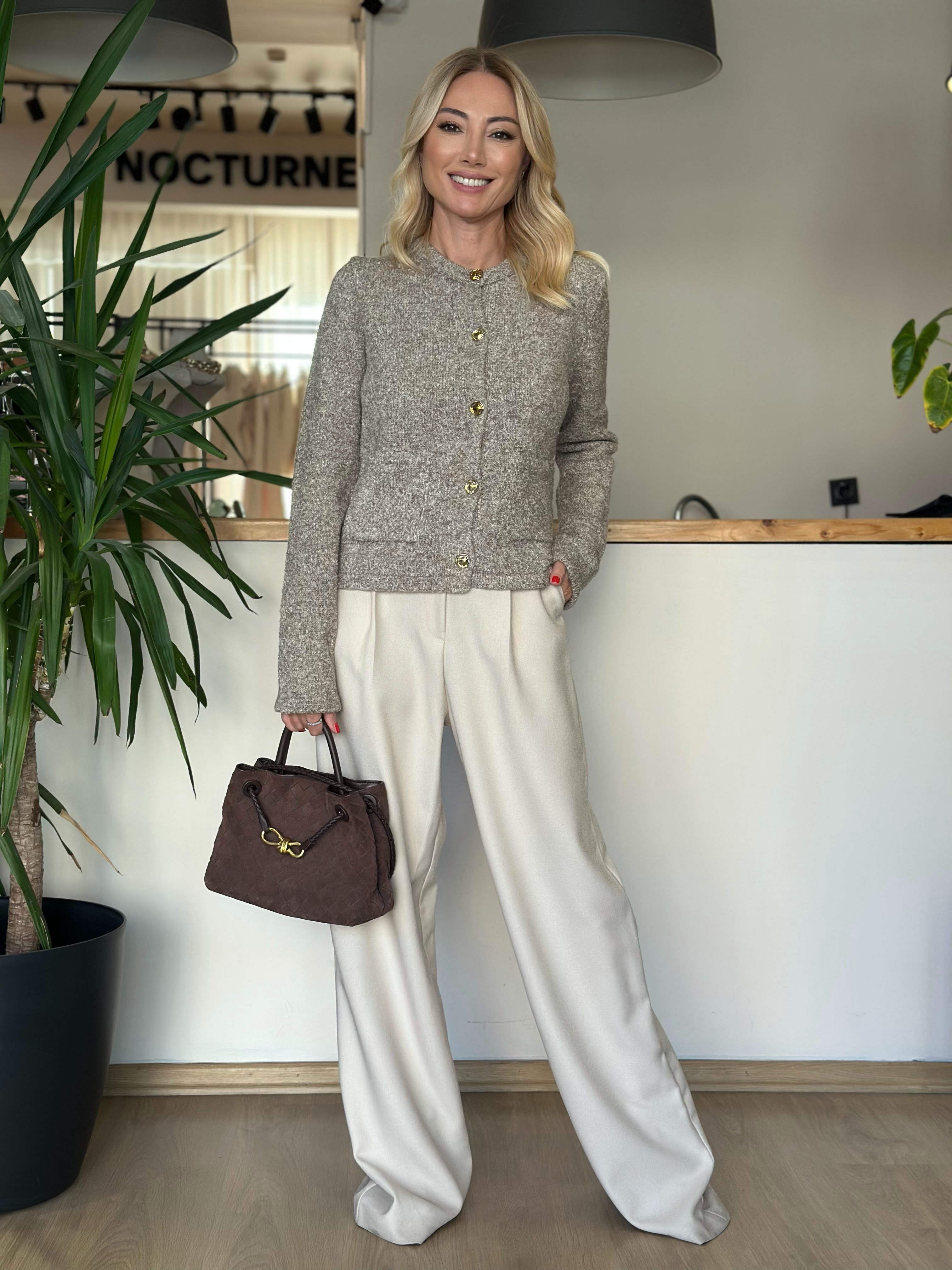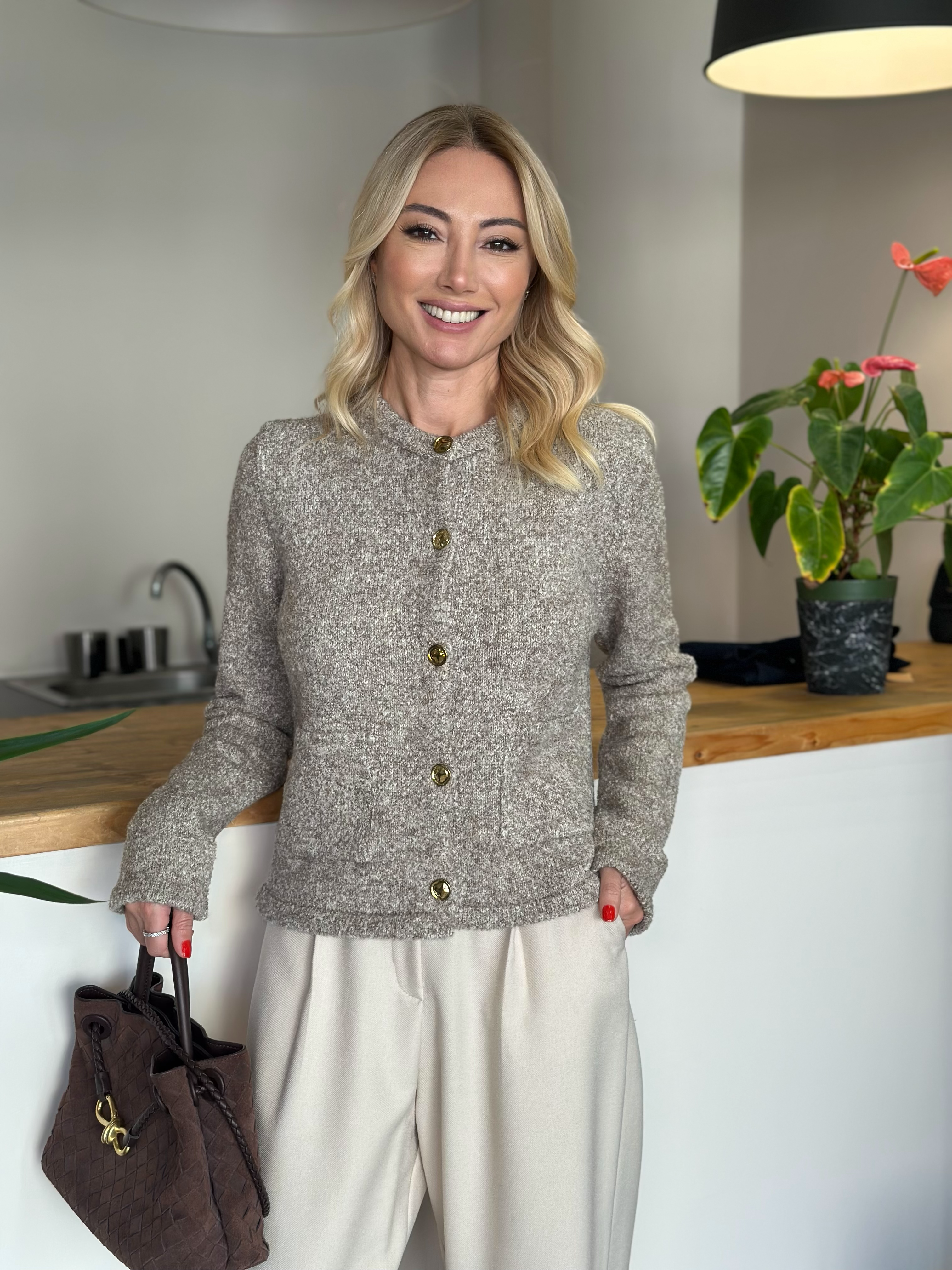 Gold Düğme Detaylı Vizon Hırka Askı166