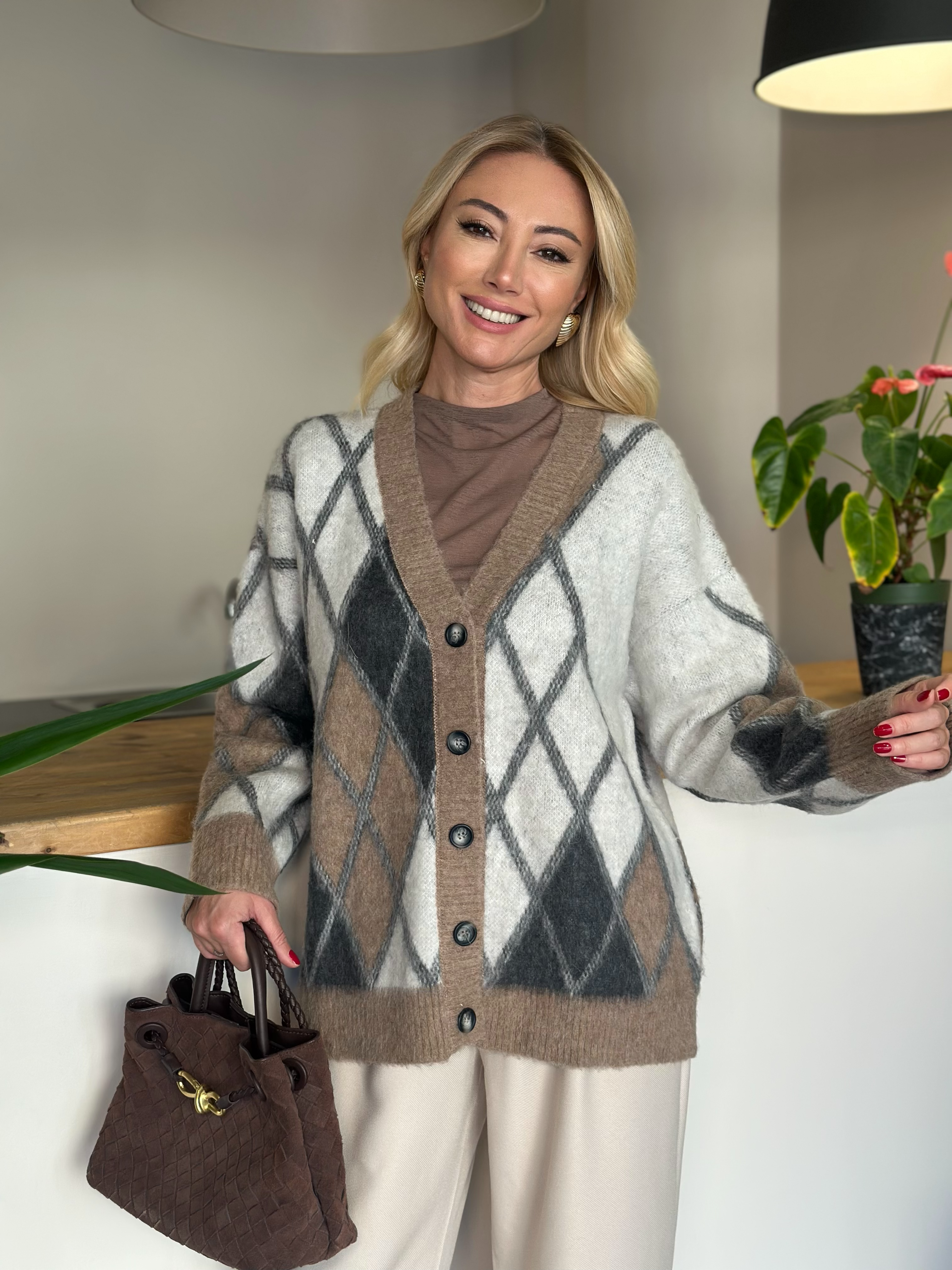 V Yaka Baklava Desen Hırka Askı00148